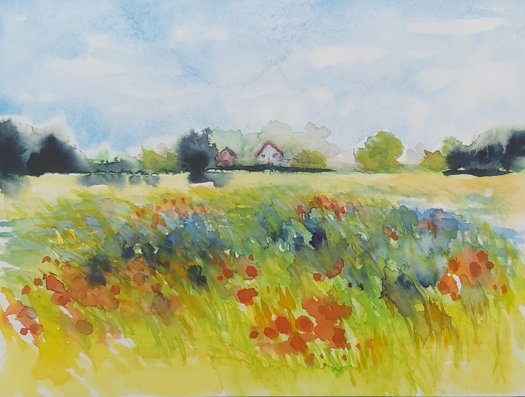 „Sommer ud rote Felder“ / 2022 / Aquarell auf Karton 32 x 24 cm