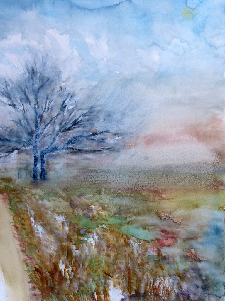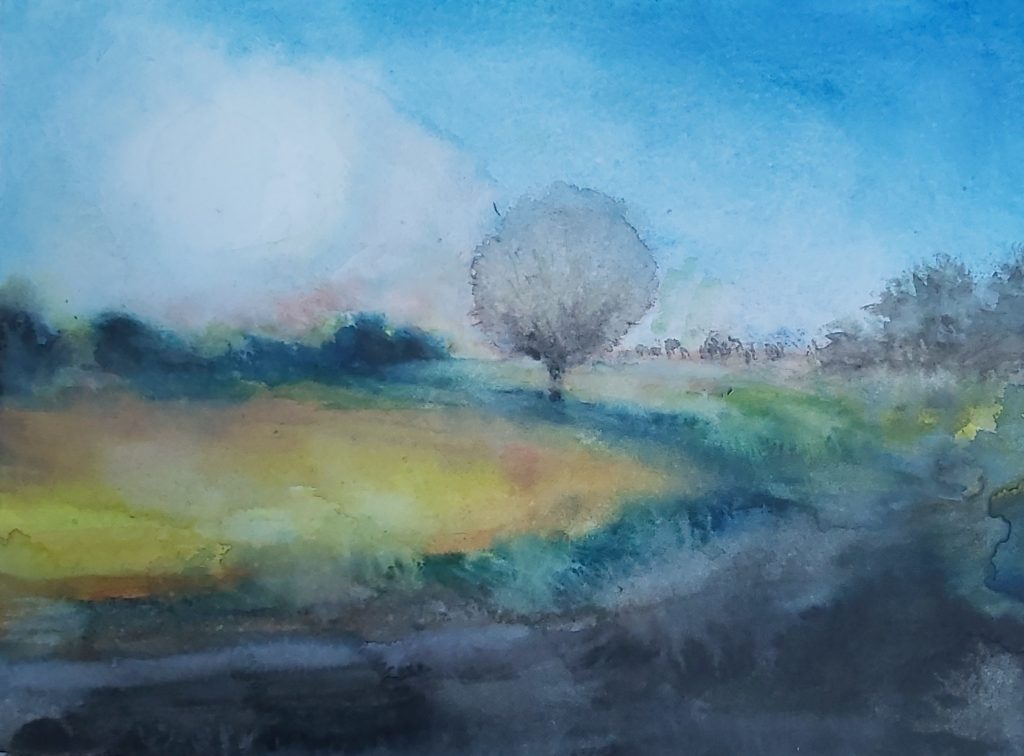 „Nebelwiese“ / 2022 / Aquarell auf Karton 32 x 24 cm