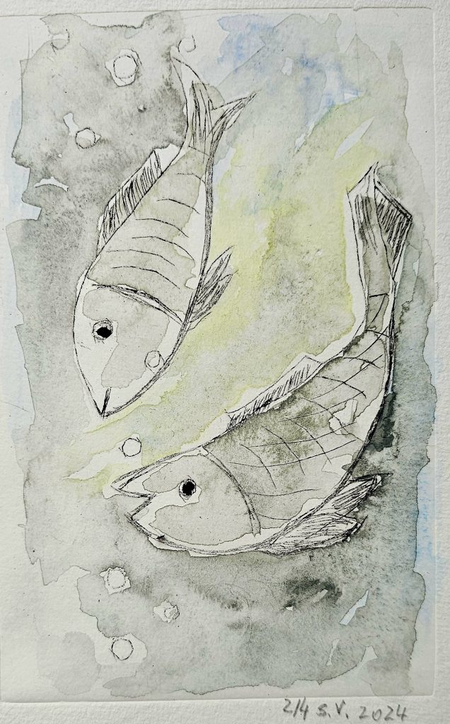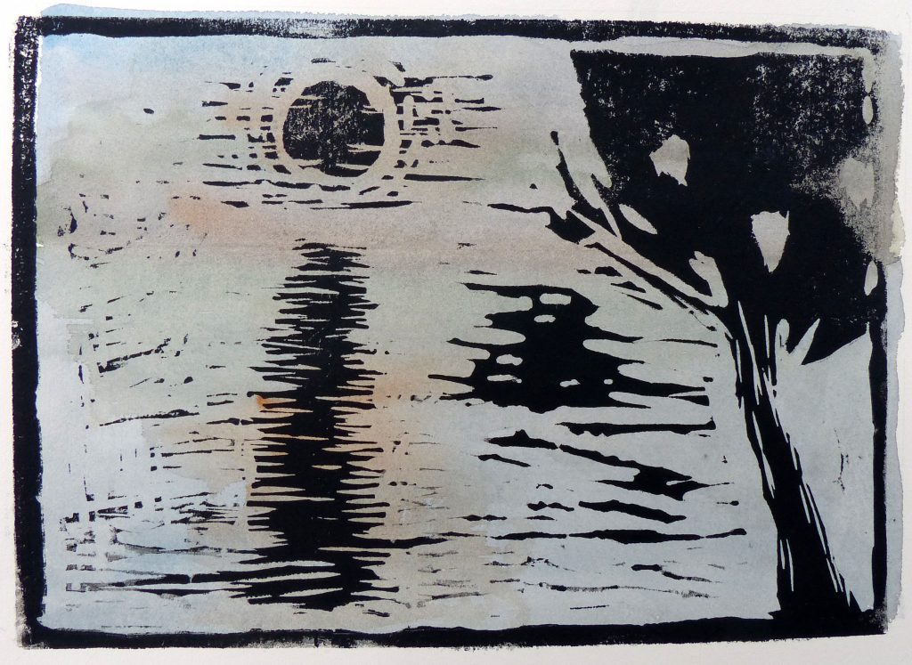 „Reflektion“ / 2019 / Linolschnitt und Aquarell 30 x 21 cm