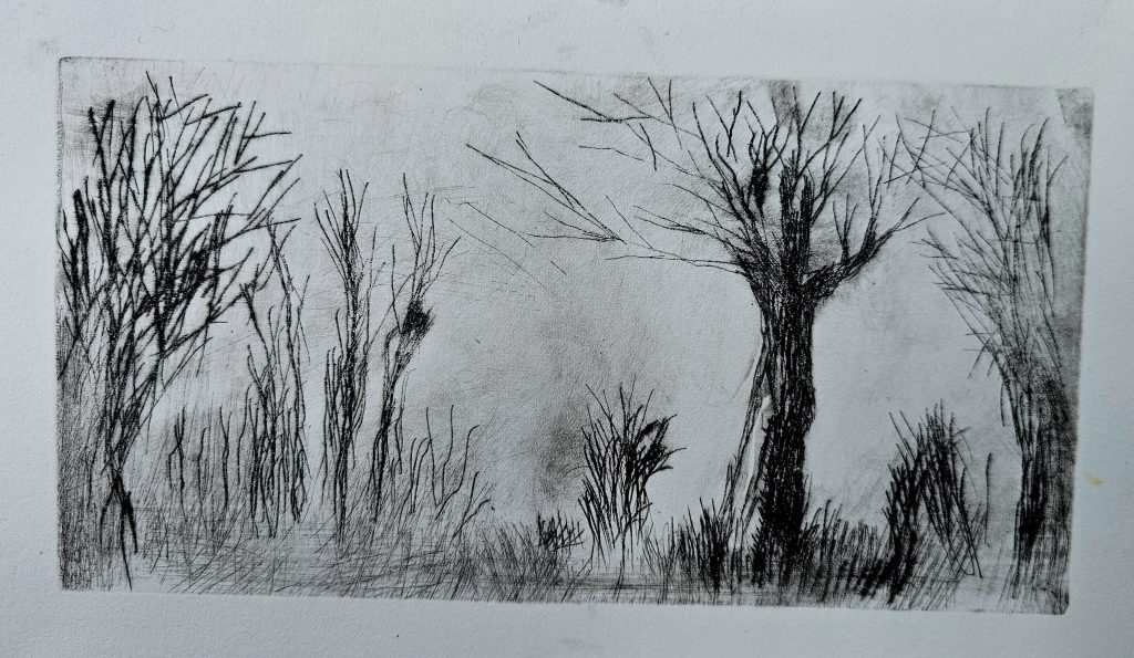 „Verweht“ / 2024 / Kaltnadelradierung auf Bütten 30 x 30 cm