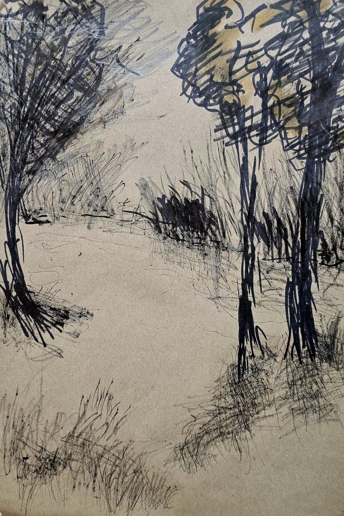 „Märkische Landschaft“ / 2025 / Feinliner auf Papier 30 x 43 cm