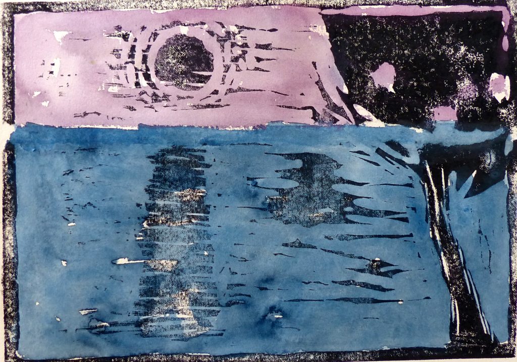 „Graue Nacht“ / 2019 / Linolschnitt und Aquarell 40 x 30 cm