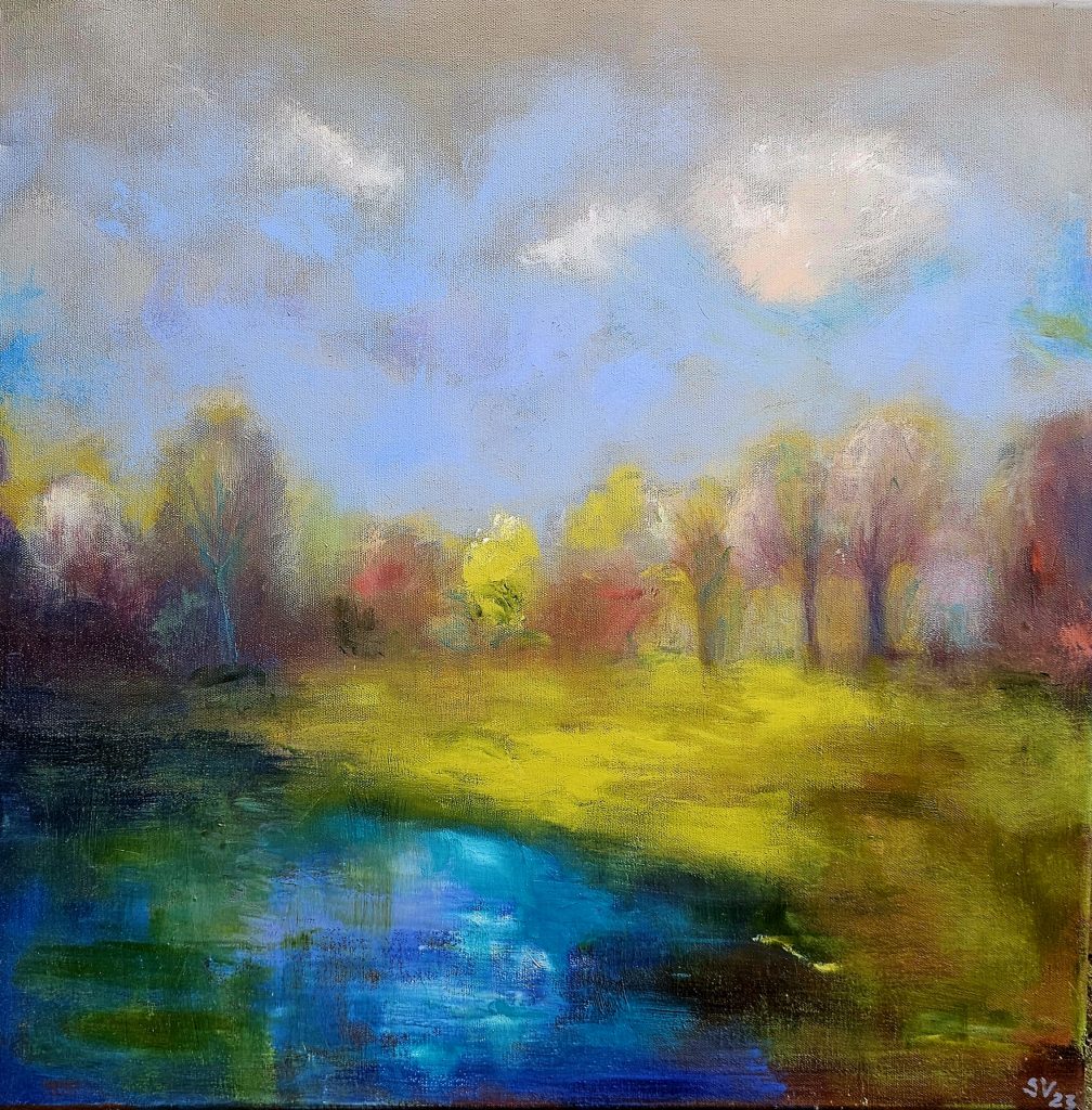 „Am Teich“ / 2026 / Ölfarbe auf Leinwand 8ß x 8ß cm