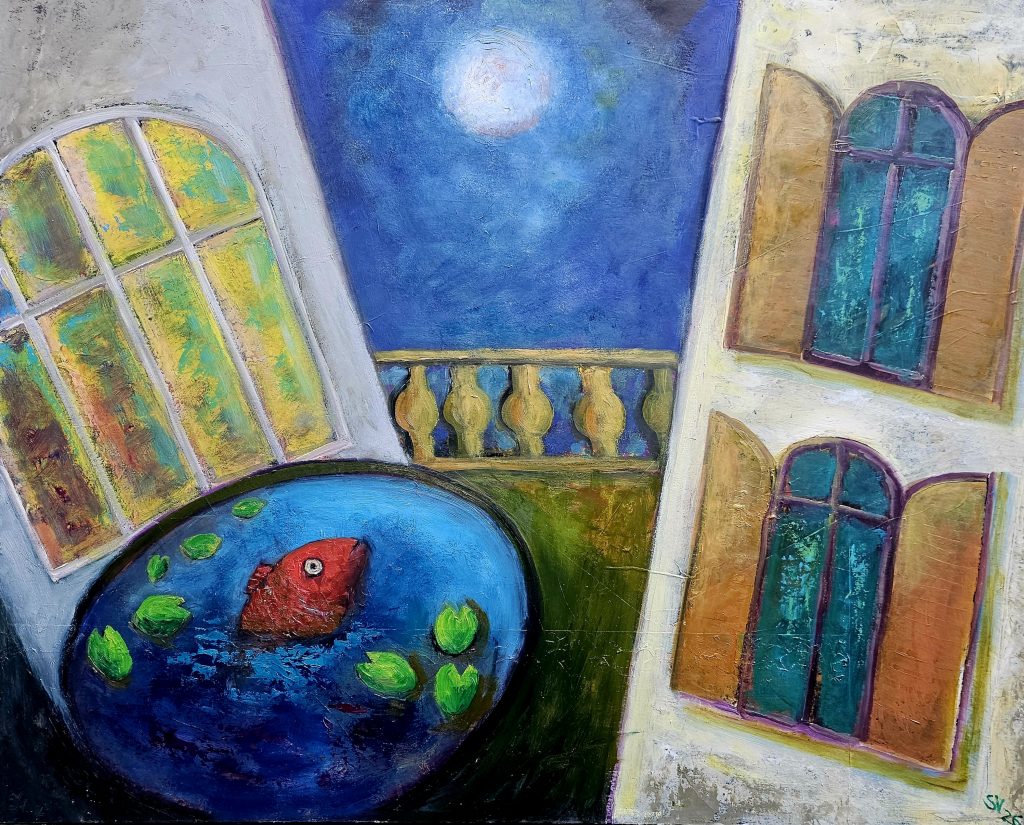 „Gedanken in blauer Nacht“ / 2025 / Ölfarbe auf Leinwand 100 x 80 cm